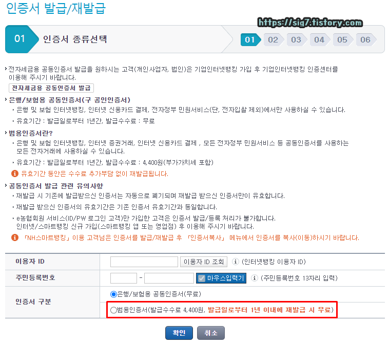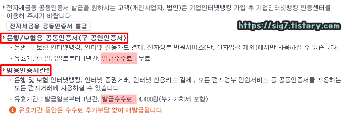 ※ 범용인증서 유효기간은 발급일로부터 1년이며, 유효기간 내 재발급은 무료입니다.