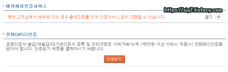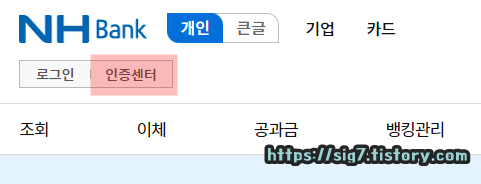 홈페이지 접속 후, 좌측 상단에 보이는 '인증센터'를 눌러줍니다.