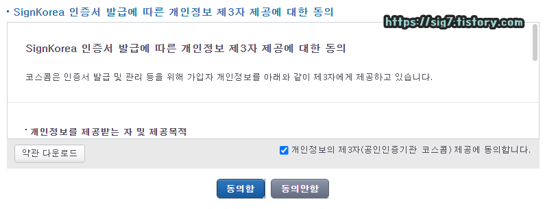 아래에 보이는 '동의함'을 클릭해줍니다.