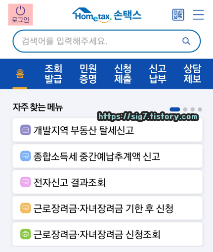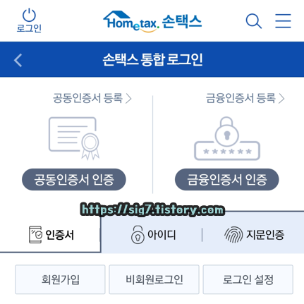 홈택스 앱 실행 후, 로그인을 해줍니다.