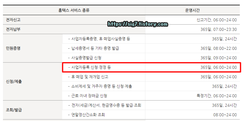 참고로 사업자등록 정정 신청은 매일 06시부터 24시까지만 가능합니다.