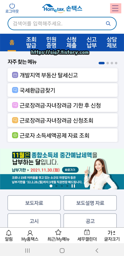 일단 먼저 '국세청 홈택스 앱'을 실행시켜줍니다.