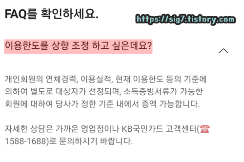 국민카드 한도 상향(증액)은 개인회원의 연체 경력, 이용 실적, 현재 이용한도 등의 카드사가 정해놓은 기준에 의해 별도로 대상자가 선정된 사람들만 신청할 수 있습니다.