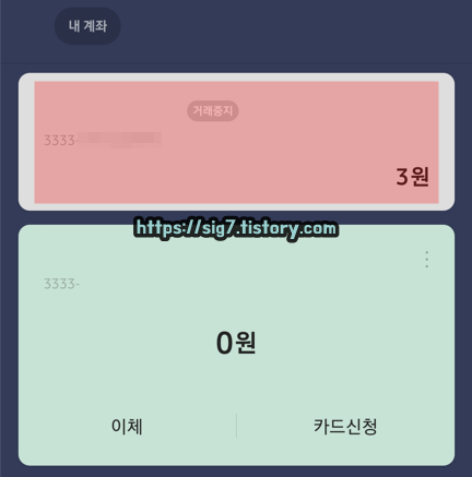 참고로 아래에 있는 계좌는 '정상 계좌'인데요. 위에 있는 '거래 중지 계좌'와 사이즈 차이도 조금 있네요. (거래 중지 계좌가 살이 많이 빠졌네요..)