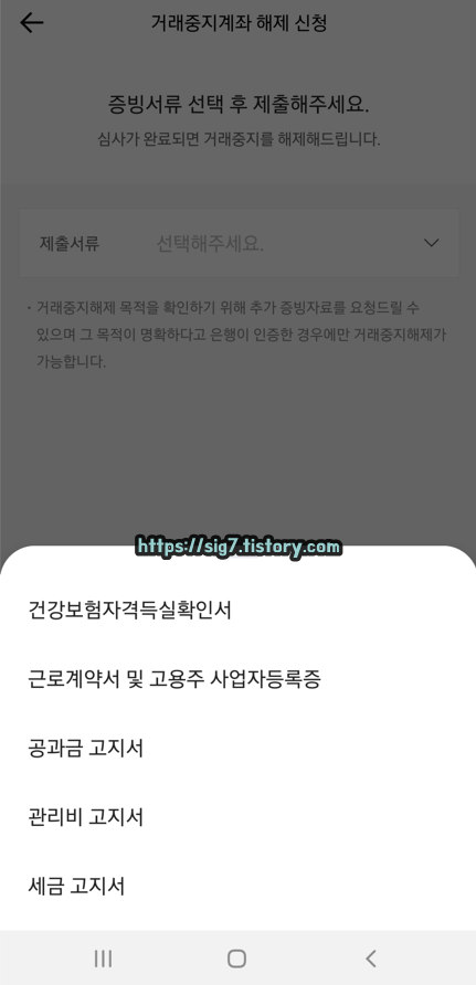 ※ 증빙 서류를 제출한다고 해서 거래 중지 계좌가 바로 풀리는 것은 아닙니다.