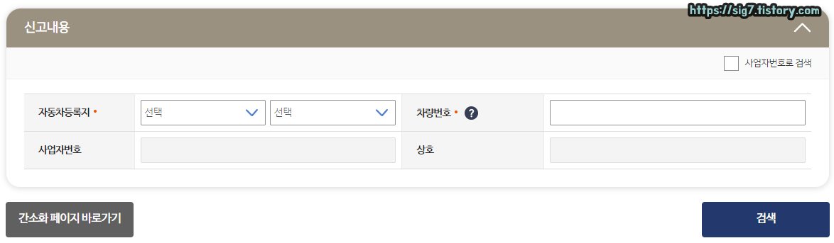 자동차 등록 지역과 차량번호를 입력한 후 '검색 버튼'을 눌러줍니다.