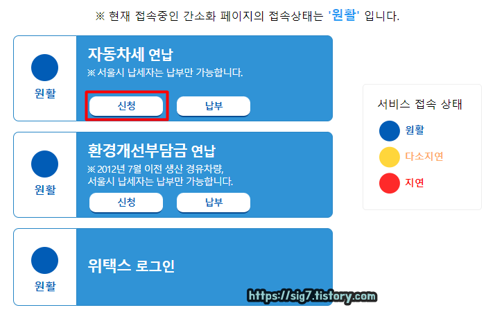 자동차세 연납 신청은 '스마트위택스 홈페이지'를 통해 가능합니다.