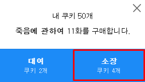 여기서 대여가 아닌 '소장'을 눌러줍니다. 대여는 쿠키 2개, 소장은 쿠키 4개가 필요하네요.