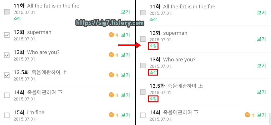 소장하고 싶은 회차 우측에 보이는 '보기'를 눌러줍니다.