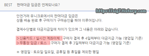 ※ 신용카드 또는 실시간 계좌이체는 구매자의 구매 승인 후 4 영업일째가 되었을 때 받을 수 있음.