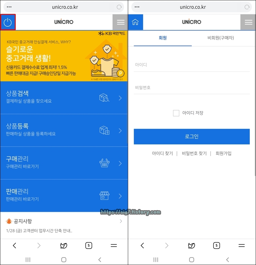 ※ 구매자는 비회원으로도 거래가 가능하지만, 판매자는 유니크로 아이디가 꼭 있어야 합니다.