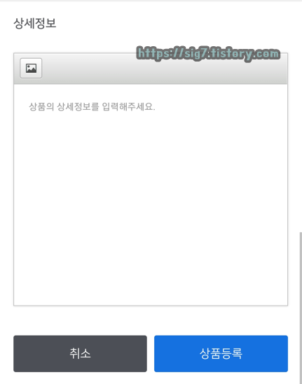 상품 정보를 입력한 후, '상품 등록 버튼'을 눌러줍니다. 참고로 사진 등록은 필수 사항이 아닙니다. (네이버카페 중고나라는 사진 등록이 필수)