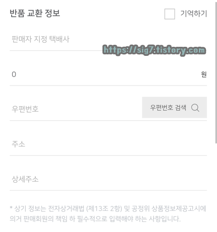 반품 교환 정보(판매자 집 주소)를 입력해줍니다.