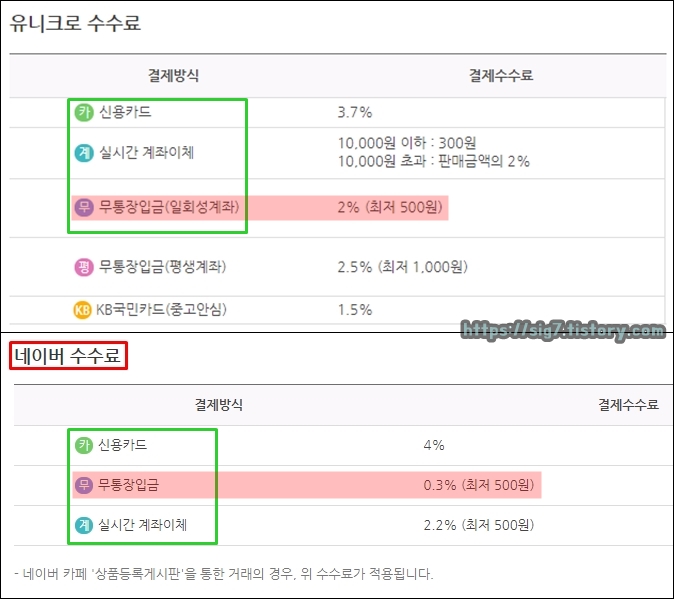 네이버 카페를 통해 유니크로 안전거래를 이용했을 때, 무통장 입금으로 거래한다면 결제 수수료는 0.3%이다. 안전거래 수수료를 조금이라도 아끼고 싶다면 네이버 카페를 통해 거래하는 것도 나쁘지 않은 선택 같다.