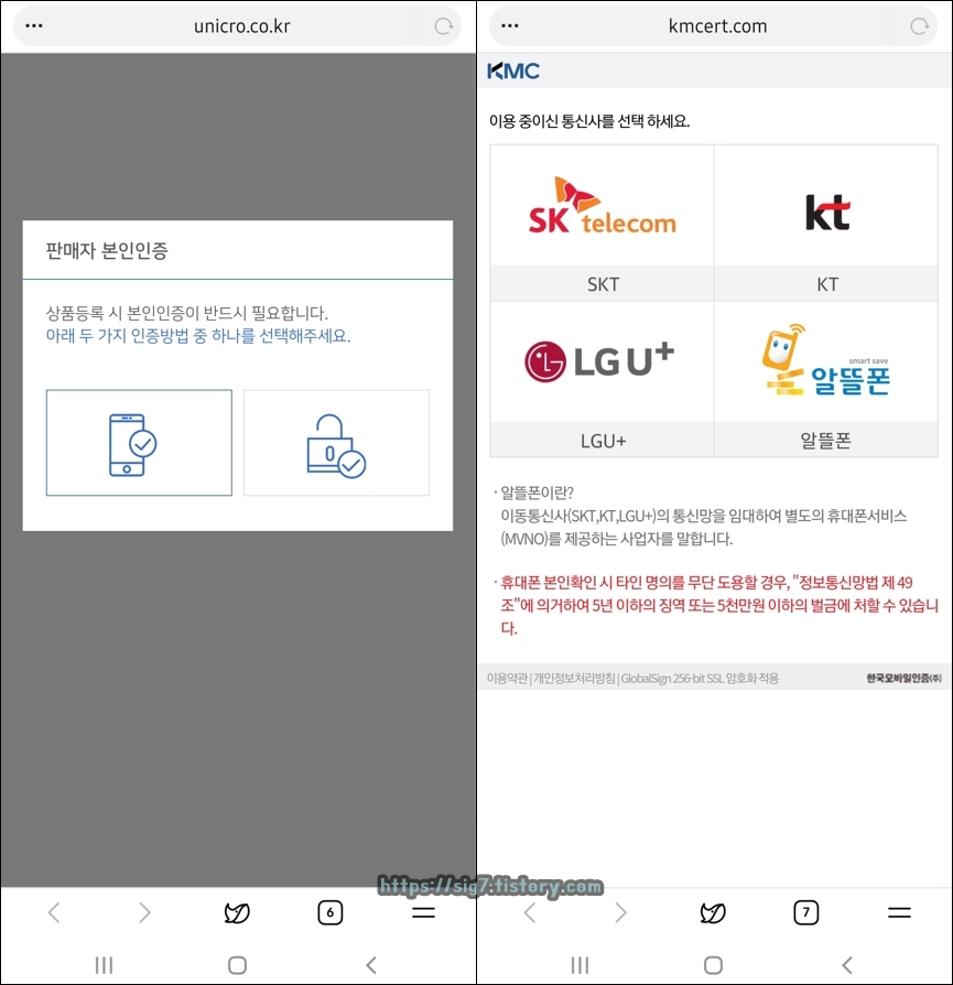 유니크로 판매 등록이 처음이라면 '판매자 본인인증'을 해줘야 합니다.
