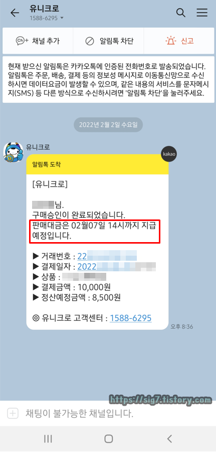 ※ 1588-6295는 유니크로 안전거래 고객센터 번호입니다.
