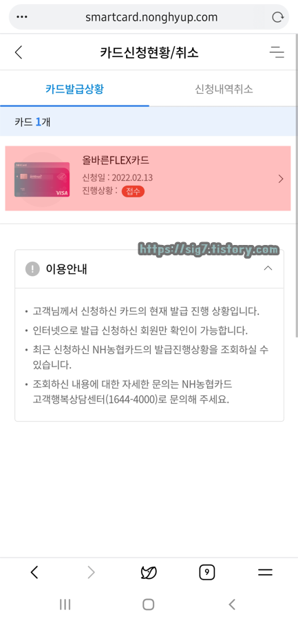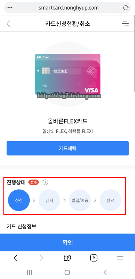 농협 카드 발급 신청 이후, 발급 진행 단계는 다음과 같습니다.