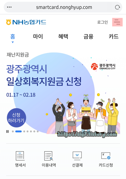 먼저 '농협카드 홈페이지'에 접속해줍니다.