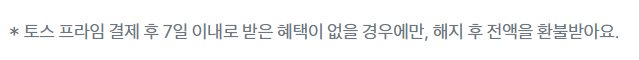 ※ 만약 토스프라임 가입을 7일보다 더 이전에 했다면 받은 혜택과는 상관없이 환불이 불가능해요.