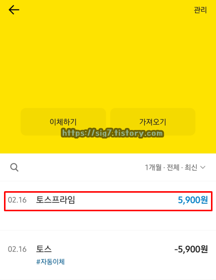 토스 프라임은 무료 서비스가 아닙니다. 매월 5,900원을 내야지만 이용할 수 있는 유료 서비스입니다.