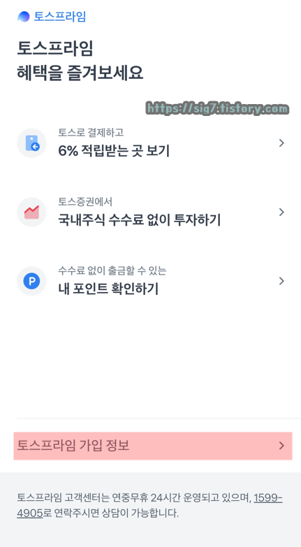 아래에 보이는 '토스프라임 가입 정보'를 눌러줍니다.