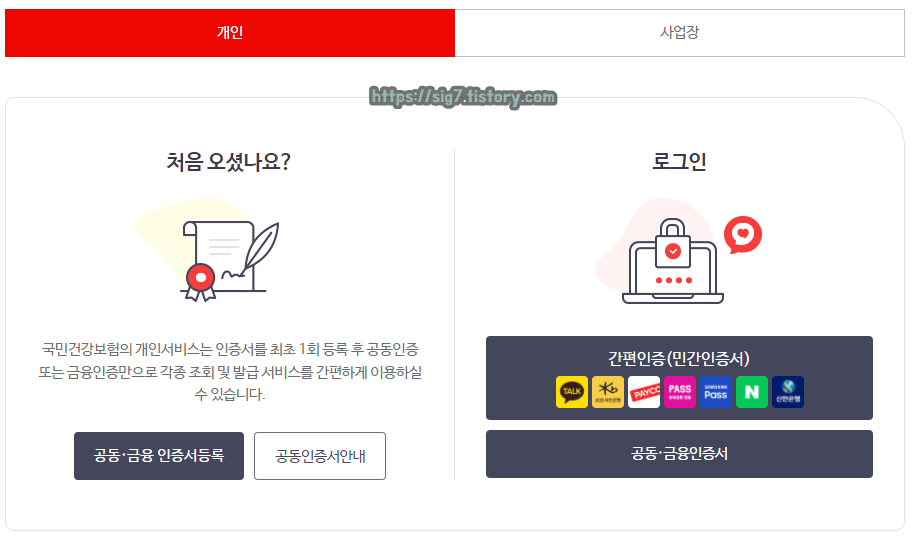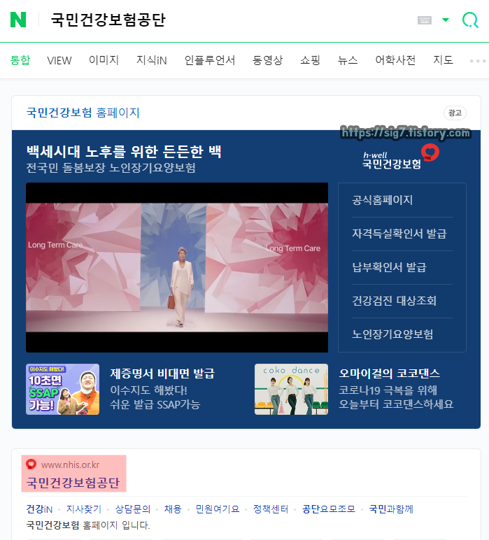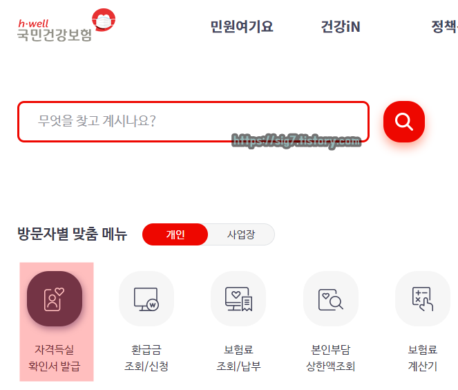 PC를 통해 발급받고 싶다면, 먼저 국민건강보험공단 홈페이지에 접속해줍니다.