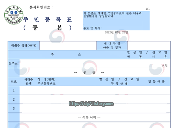 주민등록등본이란 한 세대별로 거주하고 있는 사람들을 집합으로 묶어놓은 문서이다. 해당 문서를 통해 세대주, 세대주 구성 사유 및 일자, 현주소, 세대주 및 세대원 정보를 자세히 확인할 수 있습니다.