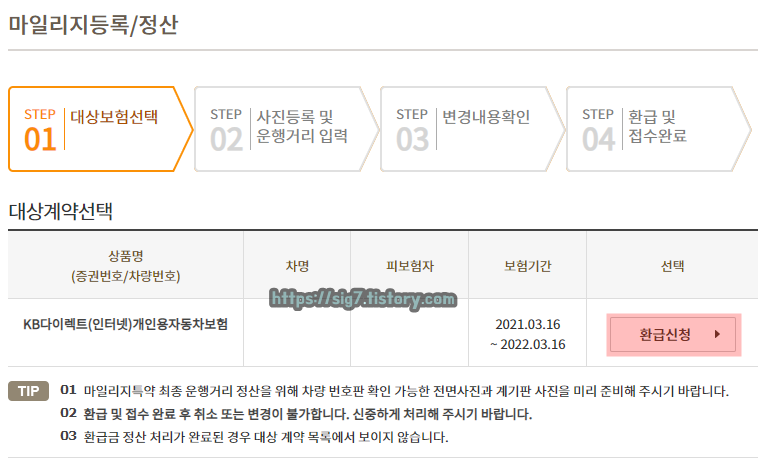 최종 운행거리 사진 등록 및 정산은 보험 종료일 기준 앞뒤로 30일 동안만 가능합니다.
