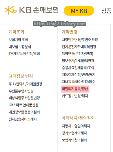 로그인 후, 계약 변경에 있는 '마일리지등록/정산'을 눌러줍니다.